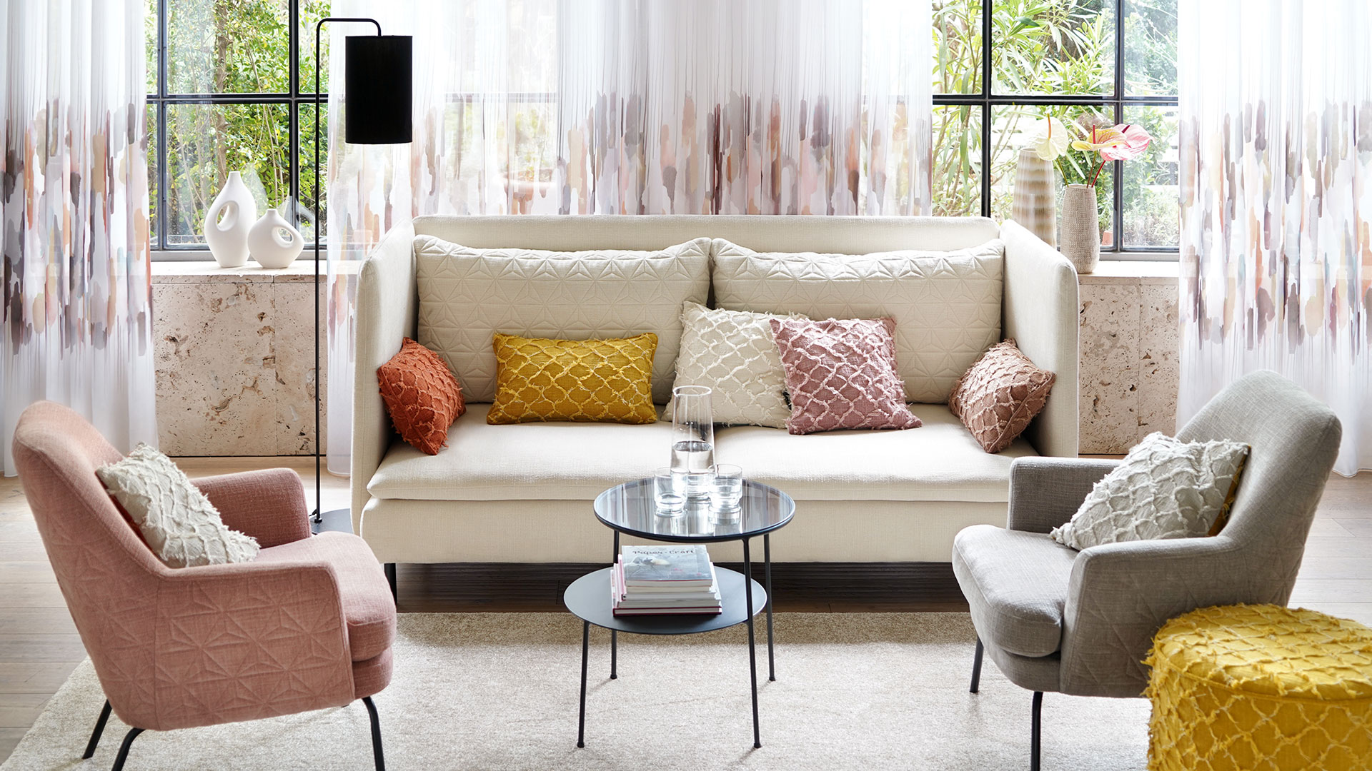 Neben den auffälligen Designs überzeugt auch die außergewöhnliche Farbpalette. Nicht nur die Uni-Qualität POMEZIA, sondern auch NETTUNO und CESENA zeigen sich in den aktuellsten Farbtrends der Saison wie Rubin, Apricot und Terrakotta.